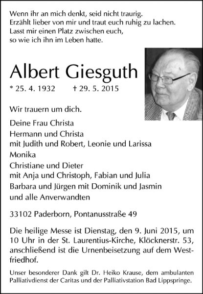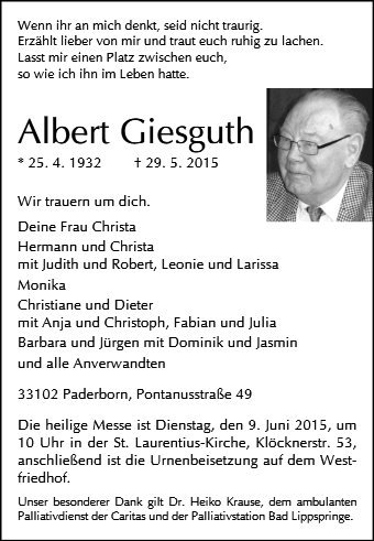 gestorben am 29. Mai 2015 in Bad Lippspringe