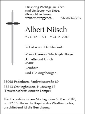 gestorben am 24. Februar 2018 in Schloß Holte-Stukenbrock