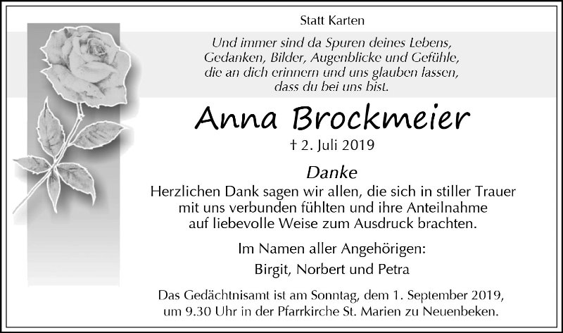 Mit dem Anzünden einer Kerze oder Mitteilen von Gedanken in ganz persönlichen Worten können Verwandte, Freunde oder Bekannte an Ihre liebe Verstorbene denken.