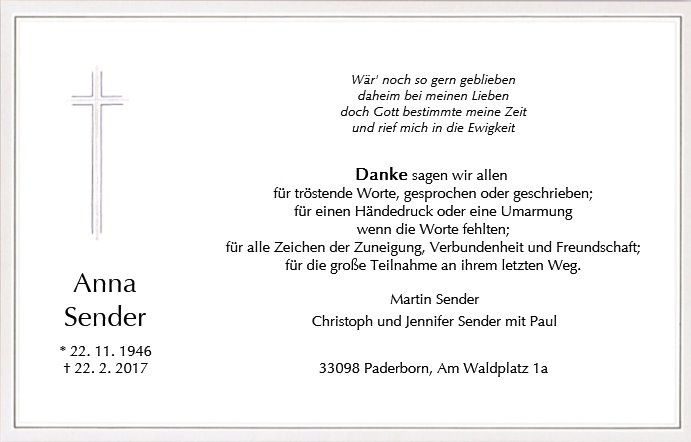 Anna Sender geb. Dombrzalski