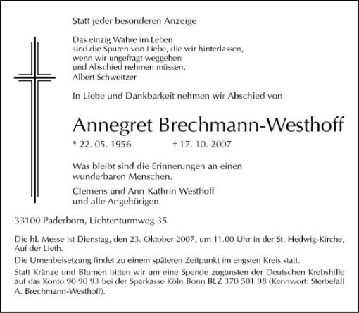 Mit dem Anzünden einer Kerze oder Mitteilen von Gedanken in ganz persönlichen Worten können Verwandte, Freunde oder Bekannte an Ihre liebe Verstorbene denken.