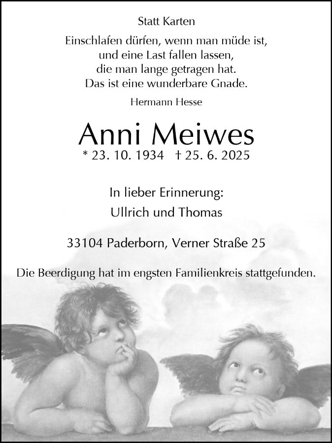 gestorben am 25. Juni 2025 in Bad Lippspringe