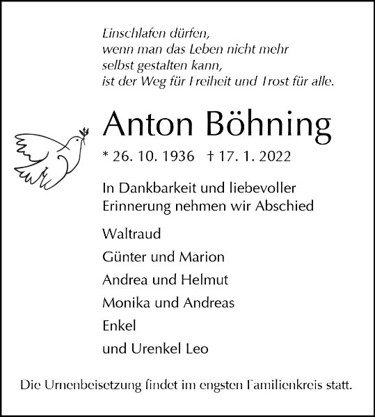 Diese Gedenkseite möge Ihnen dabei helfen, Ihre Trauer zu teilen und das Andenken gemeinsam wachzuhalten.