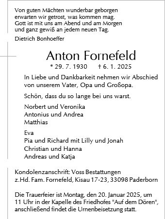 Jahresgedächtnis, Pfarrkirche St. Bonifatius