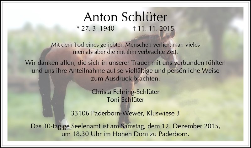 30-tägiges Seelenamt, Hoher Dom, Paderborn