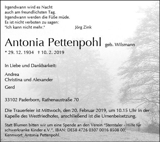 Antonia Pettenpohl geb. Wilsmann