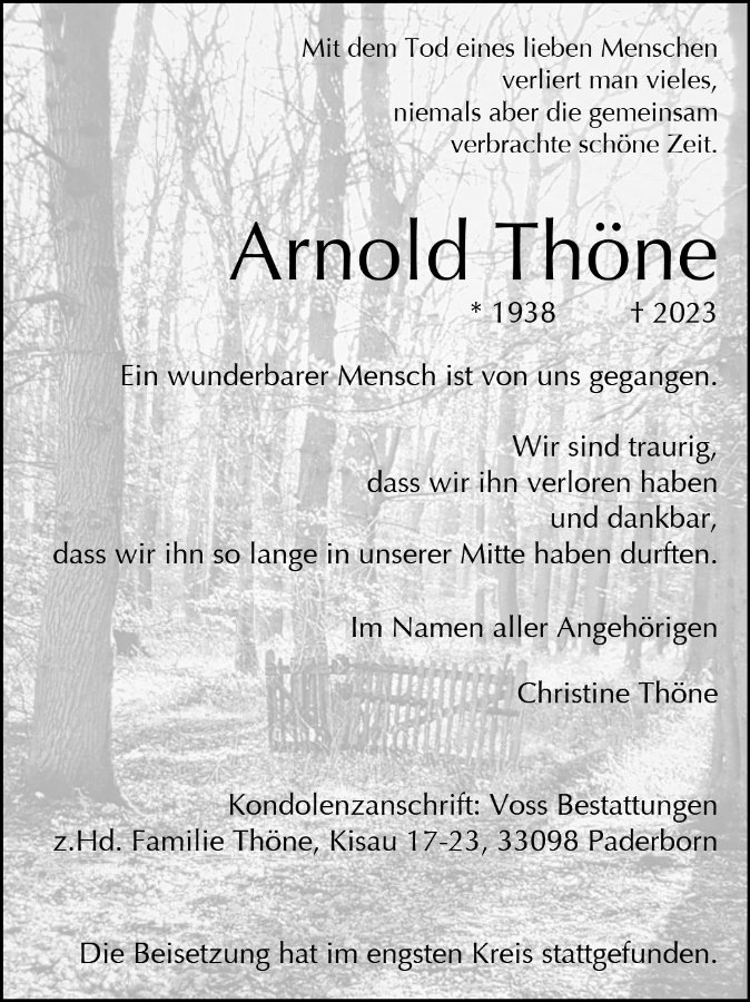 Arnold Thönegestorben am 1. Januar 2023
