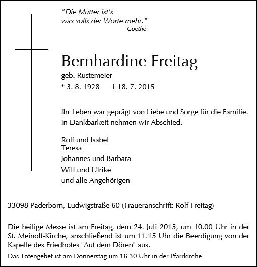 Bernhardine Freitag geb. Rustemeier