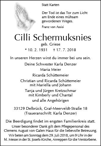 Cäcilie Schermuksnies geb. Griese