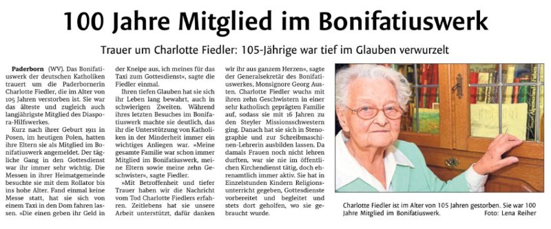 Charlotte Fiedlergestorben am 14. September 2016