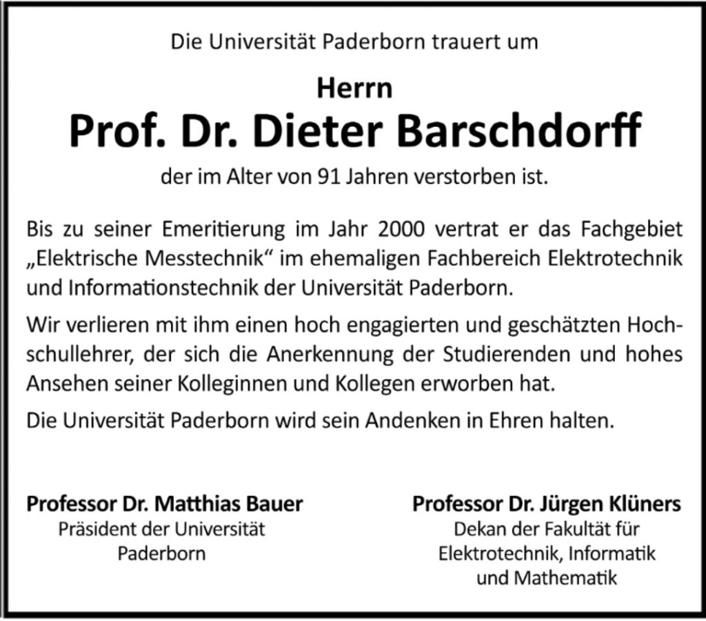Prof. Dr. Dieter Barschdorff