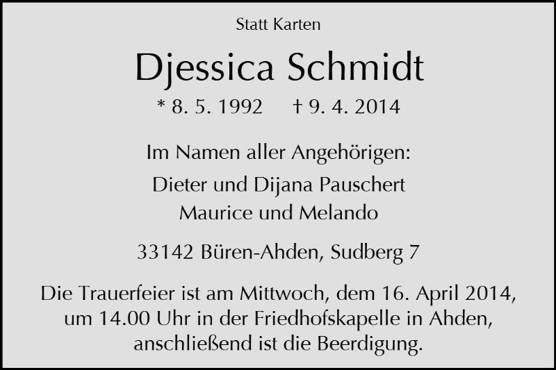 "Unser Mädchen hat sich überall durchgestetzt , sie war stark , sensibel und hilfsbereit . Sie liebte Katzen und die Natur. Sie gab alles um gut auszusehen . "