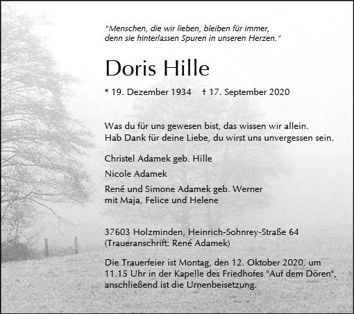 Mit dem Anzünden einer Kerze oder Mitteilen von Gedanken in ganz persönlichen Worten können Verwandte, Freunde oder Bekannte an Ihre liebe Verstorbene denken.