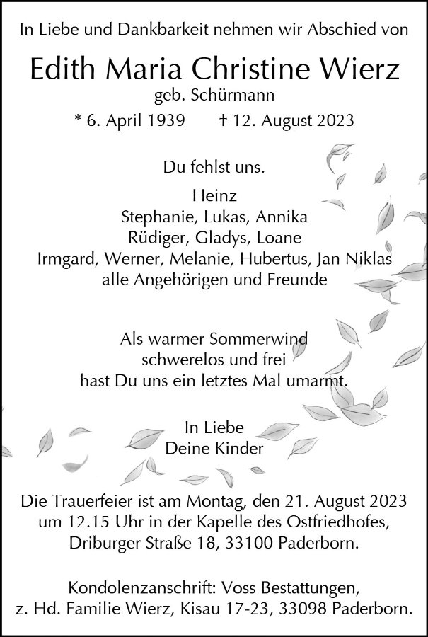 Edith Wierzgestorben am 12. August 2023