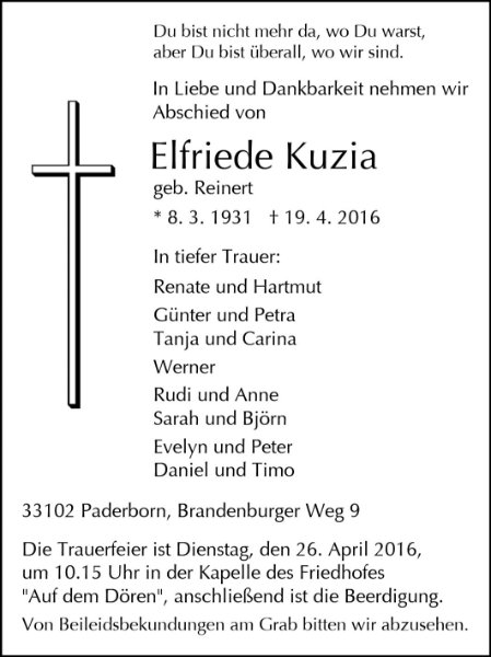 Elfriede Kuziagestorben am 19. April 2016
