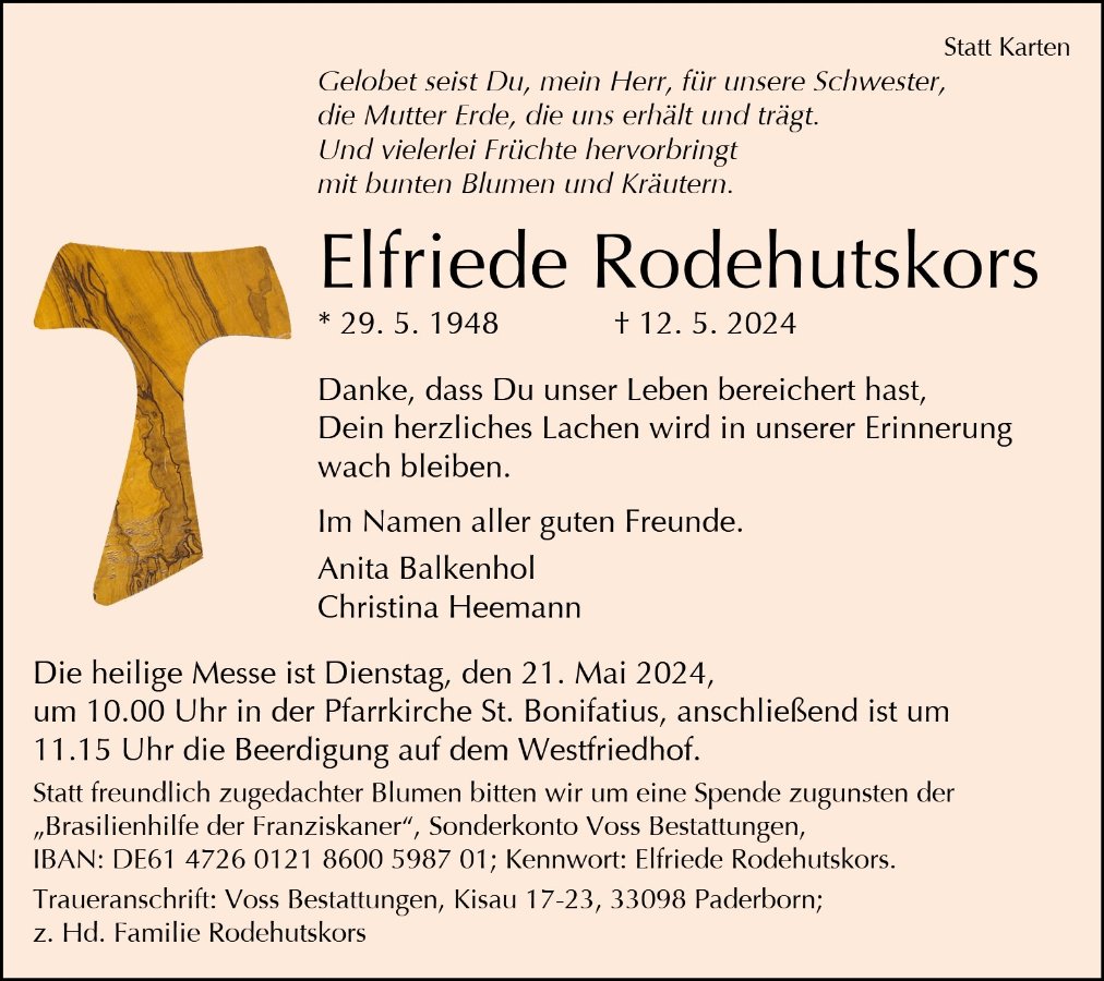 Elfriede Rodehutskorsgestorben am 12. Mai 2024