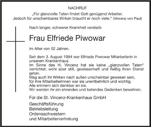 Elfryda Piwowar geb. Kinder