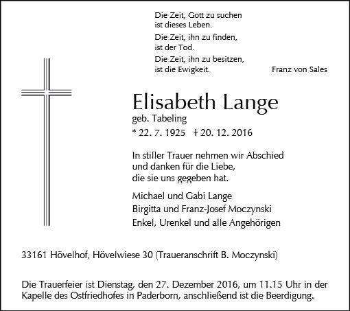 Elisabeth Lange geb. Tabeling