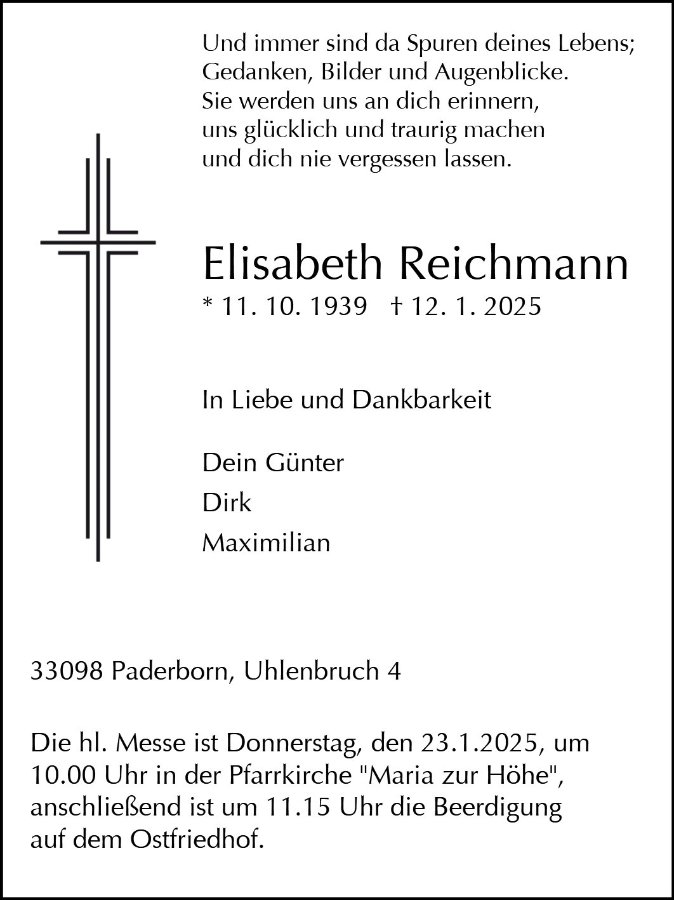 Elisabeth Reichmanngestorben am 12. Januar 2025