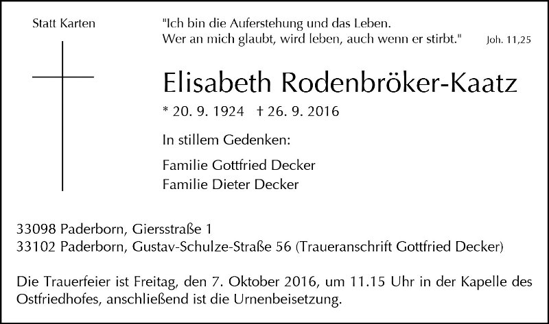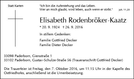 Elisabeth Rodenbröker-Kaatz geb. Rodenbröker