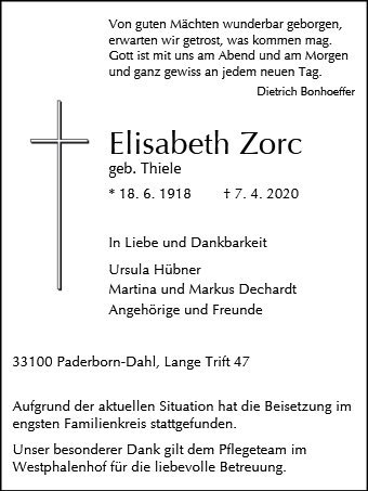 Elisabeth Zorc geb. Thiele