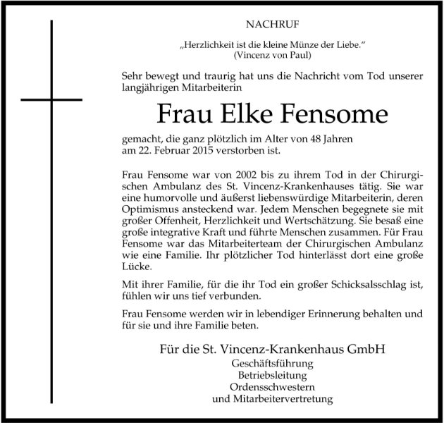 Trauerfeier, Kapelle Mutterhaus Vincenz