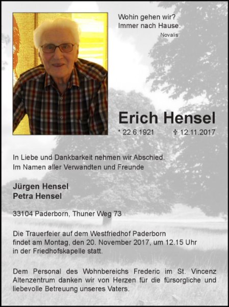 Erich Henselgestorben am 12. November 2017