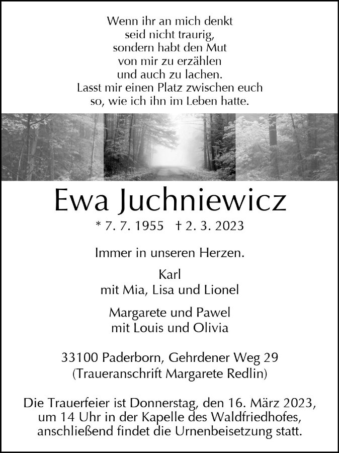 Trauerfeier, Waldfriedhof Schloß Neuhaus