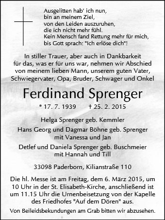 gestorben am 25. Februar 2015 in Paderborn