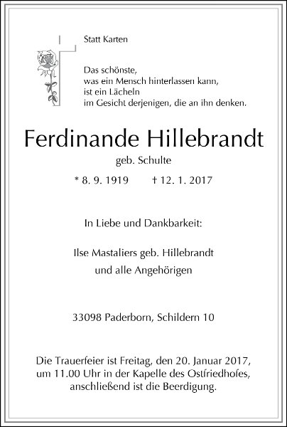 Ferdinande Hillebrandtgestorben am 12. Januar 2017