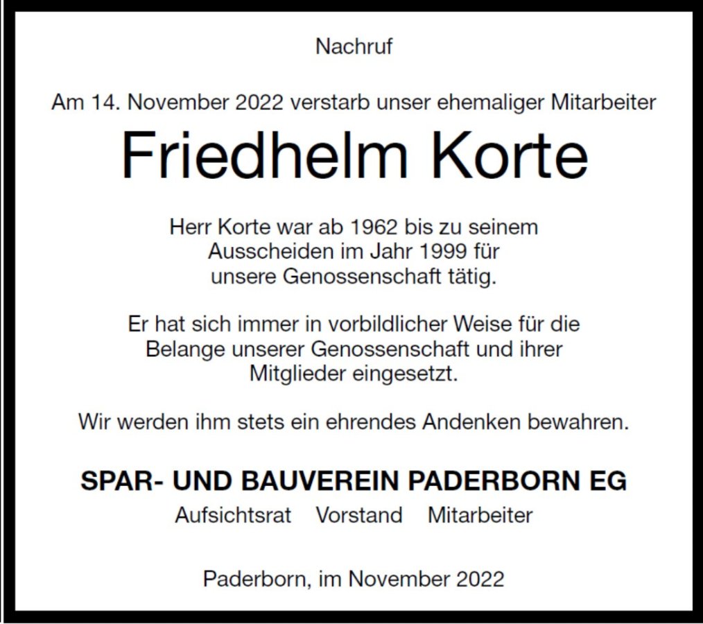 Friedhelm Kortegestorben am 14. November 2022