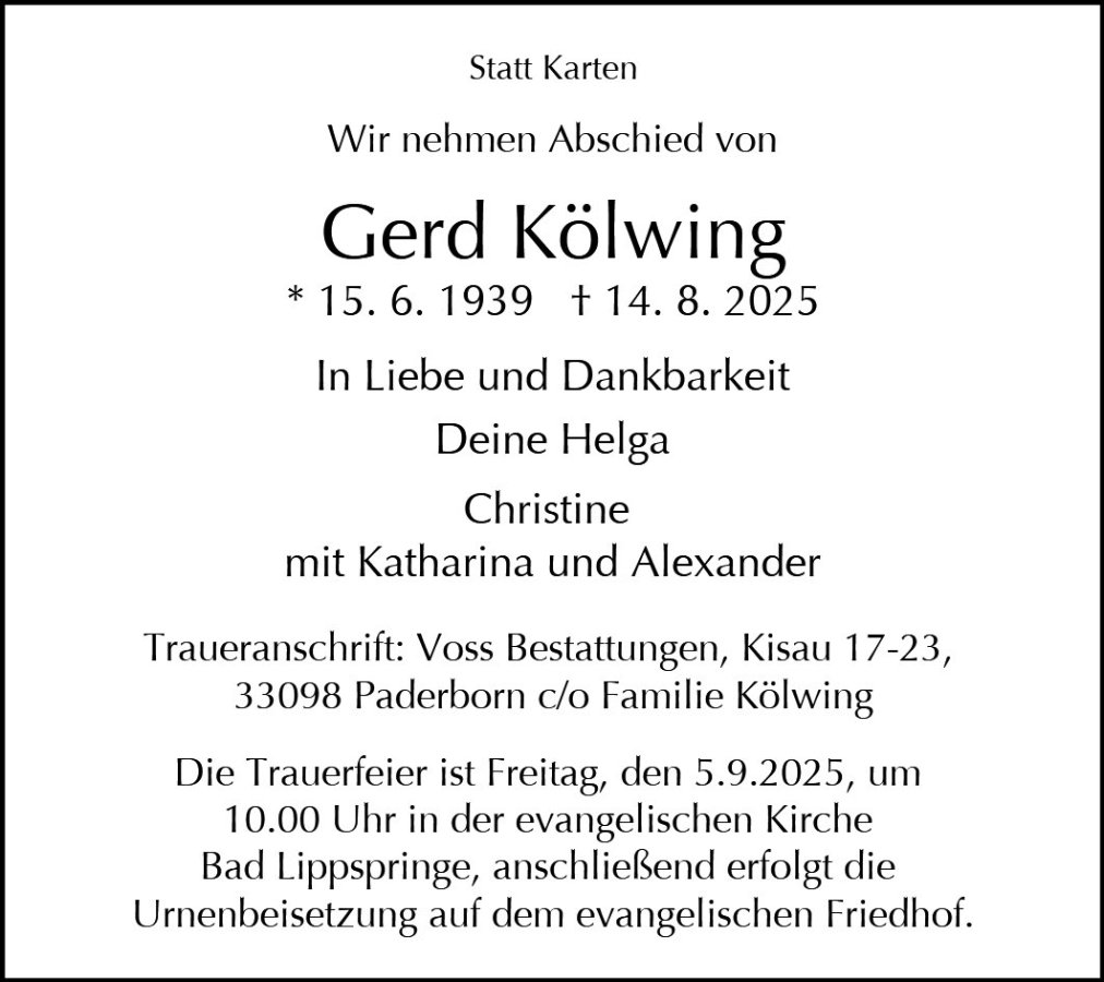 gestorben am 14. August 2025 in Bad Lippspringe