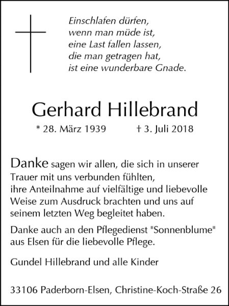 Gerhard Hillebrandgestorben am 3. Juli 2018