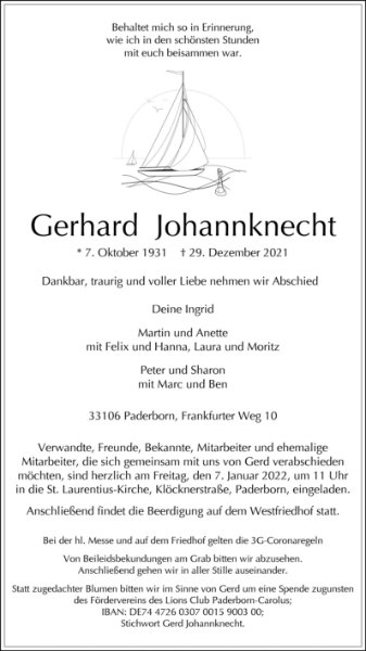 Gerhard Johannknechtgestorben am 29. Dezember 2021