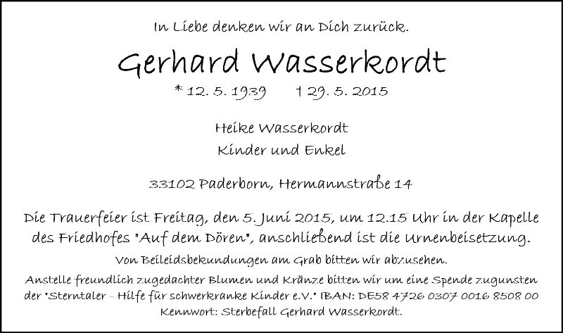 Gerhard Wasserkordtgestorben am 29. Mai 2015