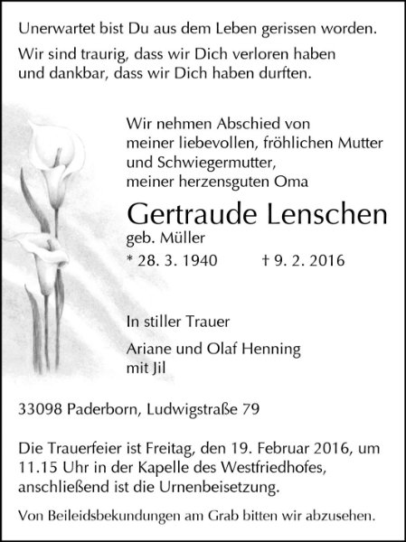 Lesen Sie hier die Anzeigen und Trauerpost!