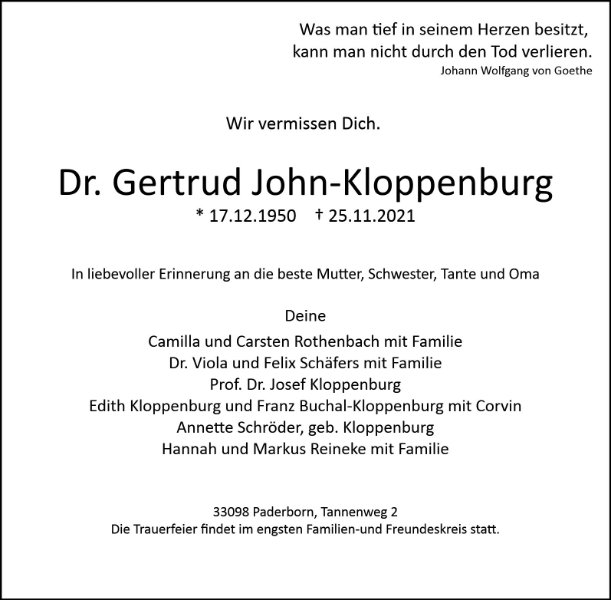 Dr. Gertrud John-Kloppenburg geb. Kloppenburg