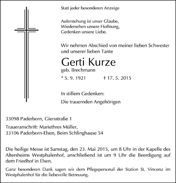 Gertrud Kurze geb. Brechmann