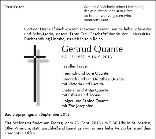 Gertrud Quante war meine "Lehrherrin" während meiner Ausbildung zum Industriekaufmann.