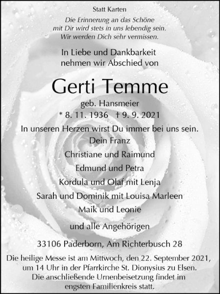 Gertrud Temmegestorben am 9. September 2021