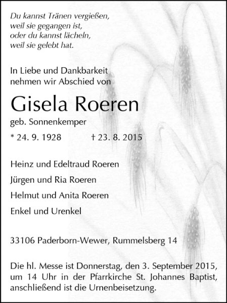 Gisela Roeren geb. Sonnenkemper