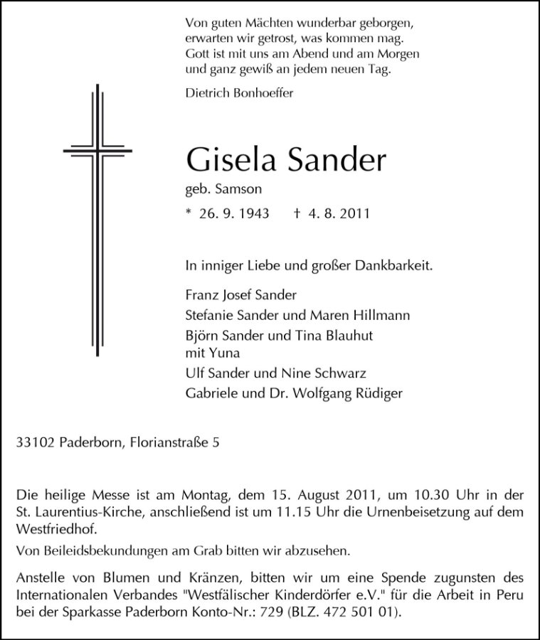 Mit dem Anzünden einer Kerze oder Mitteilen von Gedanken in ganz persönlichen Worten können Verwandte, Freunde oder Bekannte an Ihre liebe Verstorbene denken.