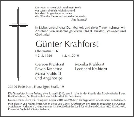 gestorben am 2. April 2010 in Paderborn