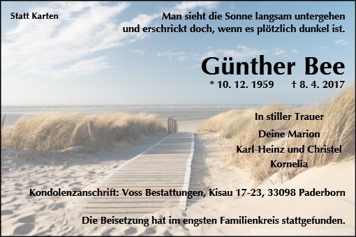 mit großer Bestürzung habe ich den Tod von Günther aufgenommen. Günther und ich haben ein Großteil unserer "Jugend" gemeinsam in der Kneipenszene in Paderborn verbracht. Ich denke wir haben mehr als 4 Jahre zusammen im "Pendel" als Zapfer gearbeitet. Über die Jahre hat man sich aus den Augen verloren, da sich die Lebenswege unterschiedlich entwickelt haben. Dennoch möchte ich Ihnen mitteilen, dass ich an diese Zeit sehr gerne zurückdenke und damit verbundenen langen gemeinsamen Nächte mit Günther und den dazugehörigen Gesprächen. Es macht mich traurig, dass sein Leben nur so kurz war.