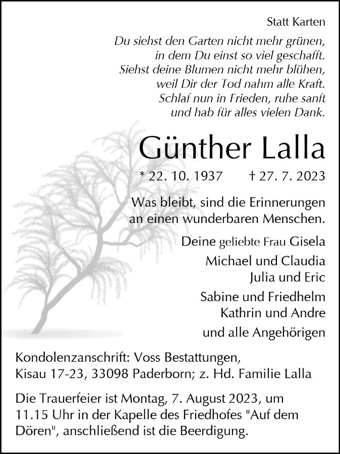 Günther Lallagestorben am 27. Juli 2023