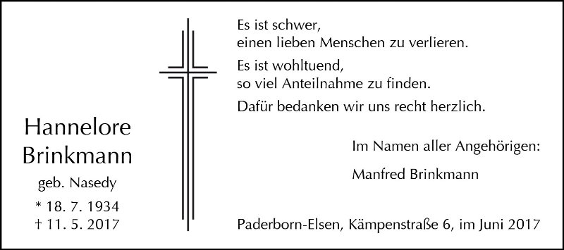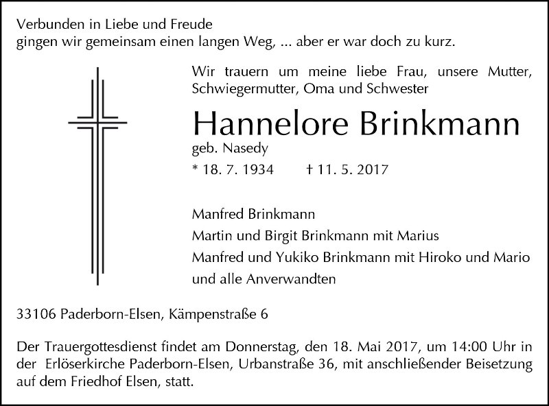 Hannelore Brinkmann geb. Nasedy