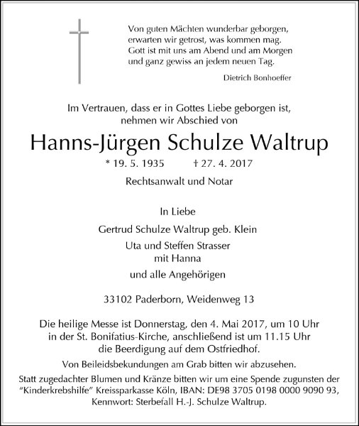Hanns-Jürgen Schulze Waltrupgestorben am 27. April 2017