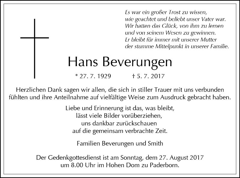 Dipl.-Ing. Hans Beverungengestorben am 5. Juli 2017