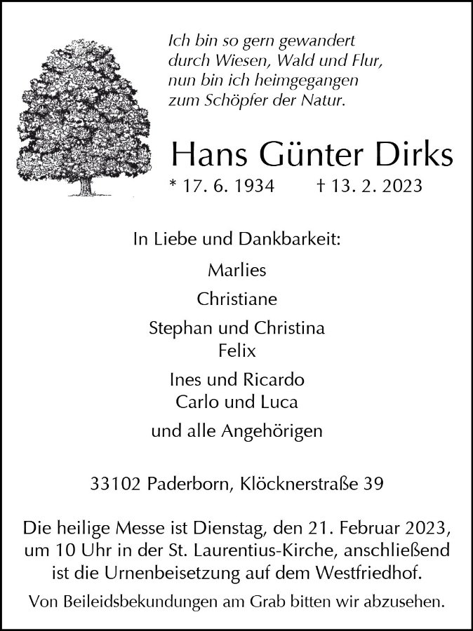 Hans Günter Dirksgestorben am 13. Februar 2023