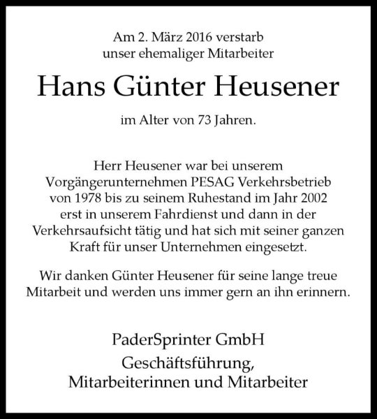 Hans Günter Heusenergestorben am 2. März 2016